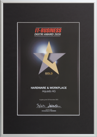 In der Kategorie HARDWARE & WORKPLACE wurde Aquado bereits zum fünften Mal in Serie mit dem begehrten DISTRI AWARD 2026 „GOLD“ ausgezeichnet.